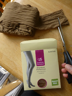 I personally don’t wear panty hose, but bought some just for this purpose. This pair cost me only a dollar (at the handy dollar store within walking distance from me) and will give me dozens of ties.